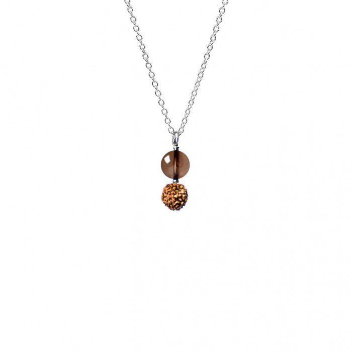 O Quartzo Fumado e a Rudraksha de 5 mukhis proporcionam prosperidade, dinheiro e abundância geral. Ponha este colar clássico e ao mesmo tempo sofisticado se necessitar de ajuda para alcançar as metas empresariais, tomar boas decisões económicas ou manifestar os seus sonhos e planos económicos para torná-los realidade.